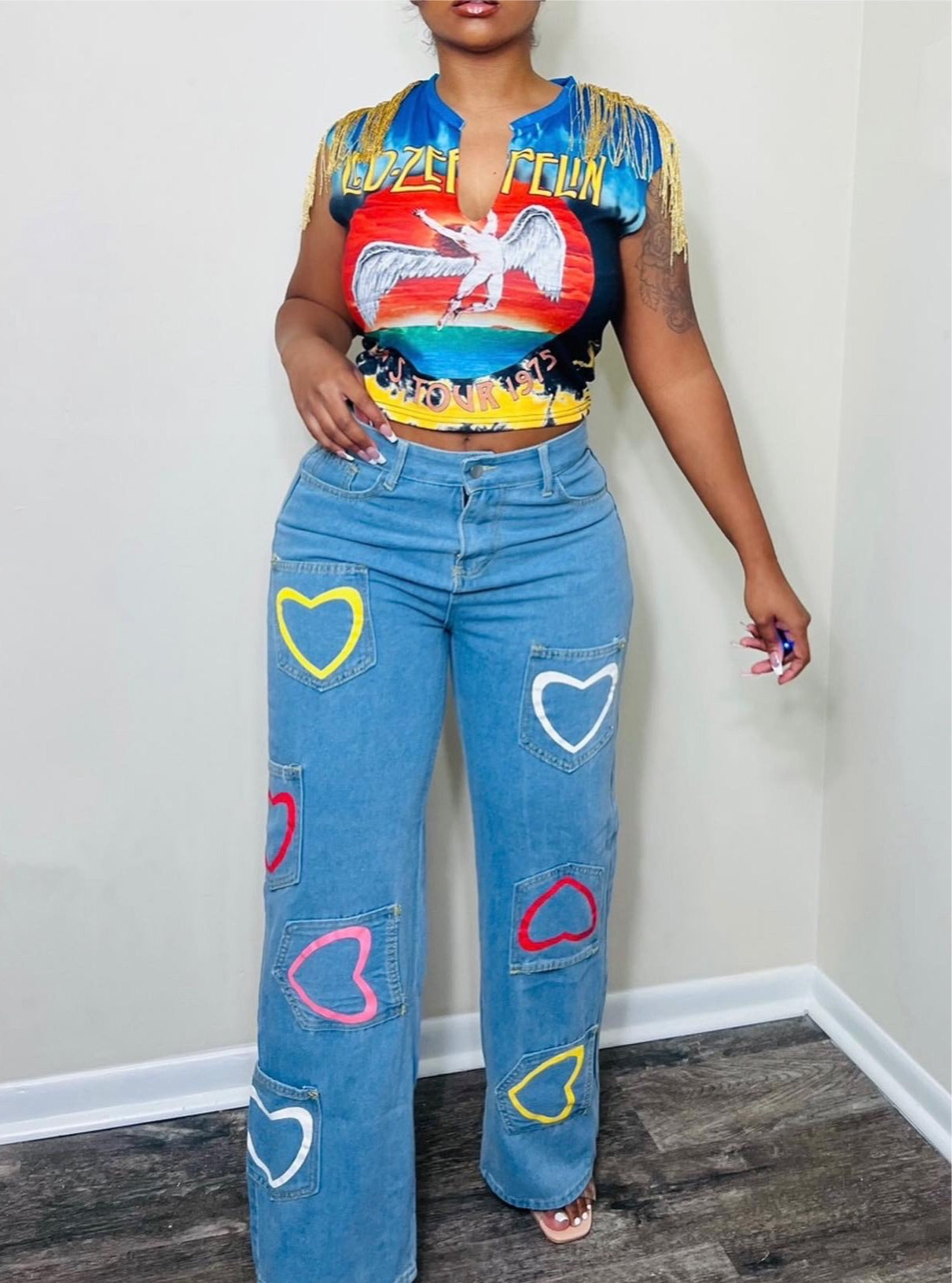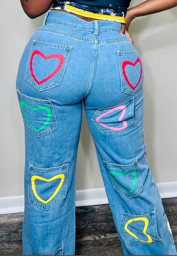 Wide Leg Heart Print
