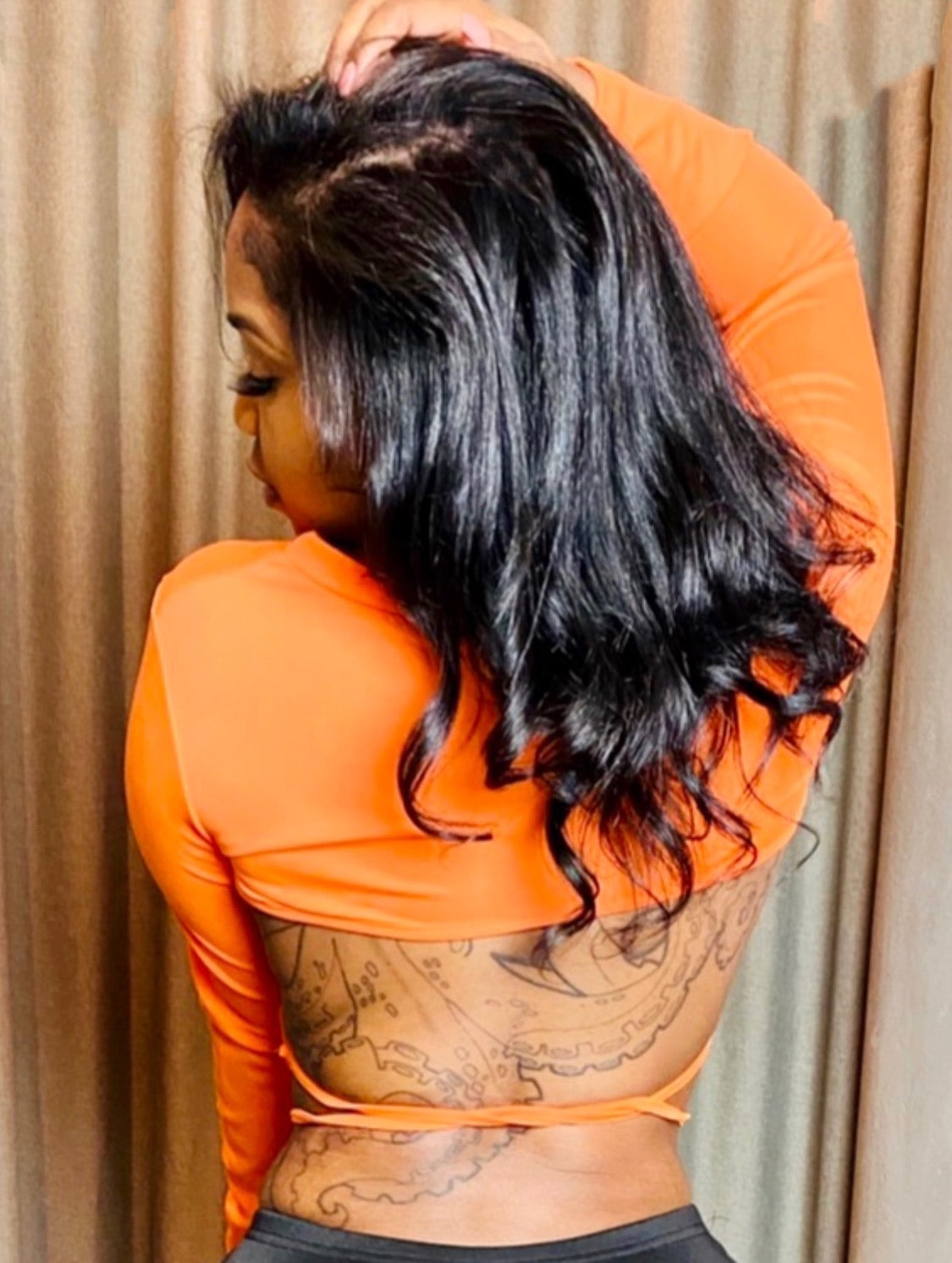 •Long Sleeve Crop Top With Strings