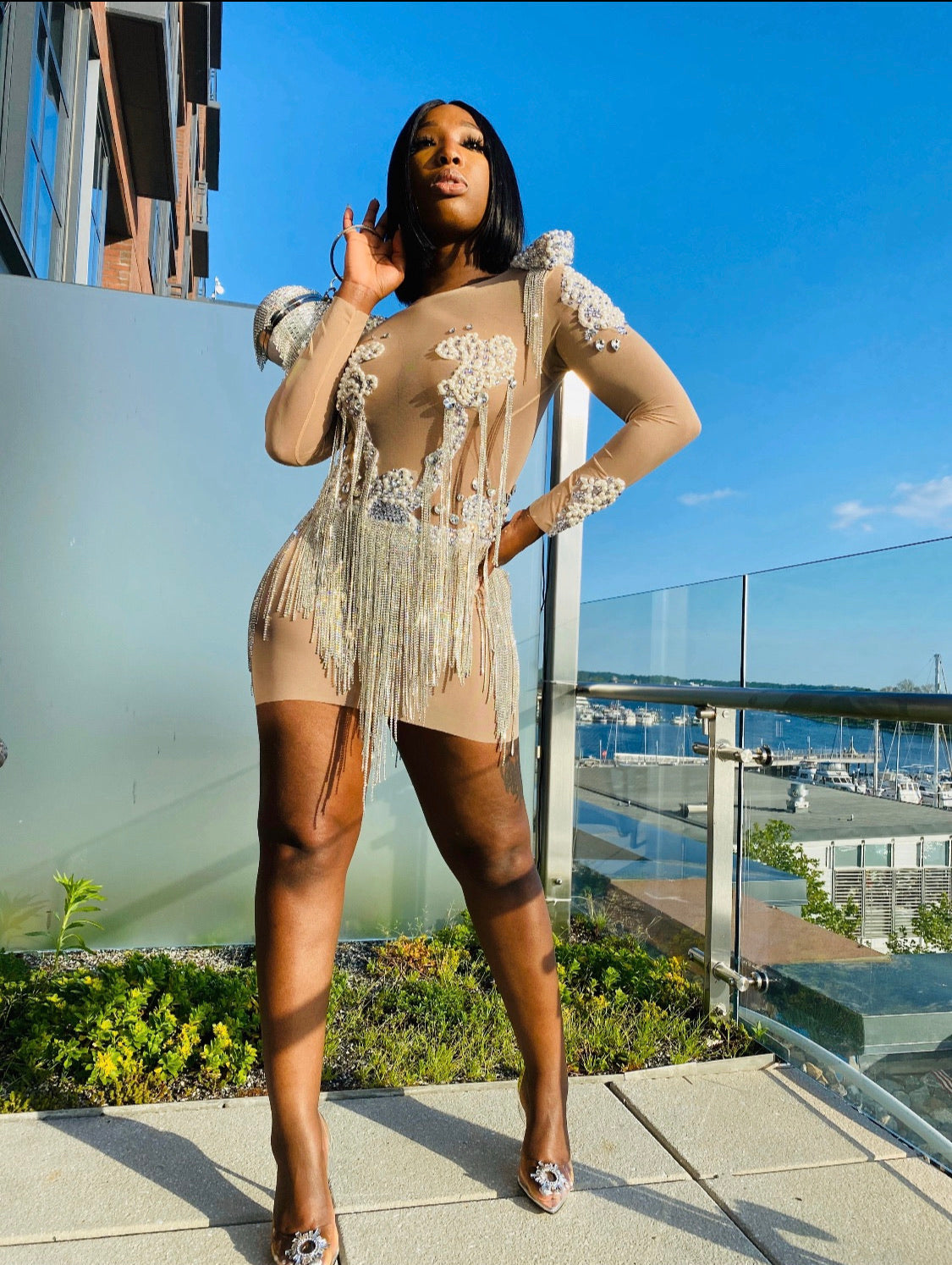 Mesh-See Through- Sequined Shingle- Above The Knee-Dress