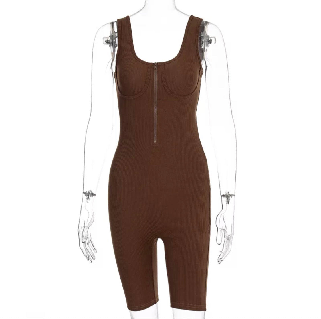 Cotton ribbed- Zip Up- Shorts Jumpsuit